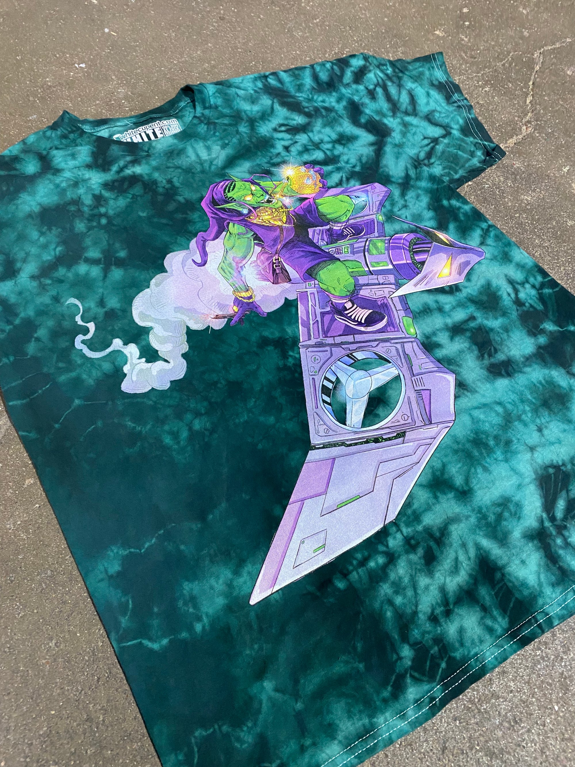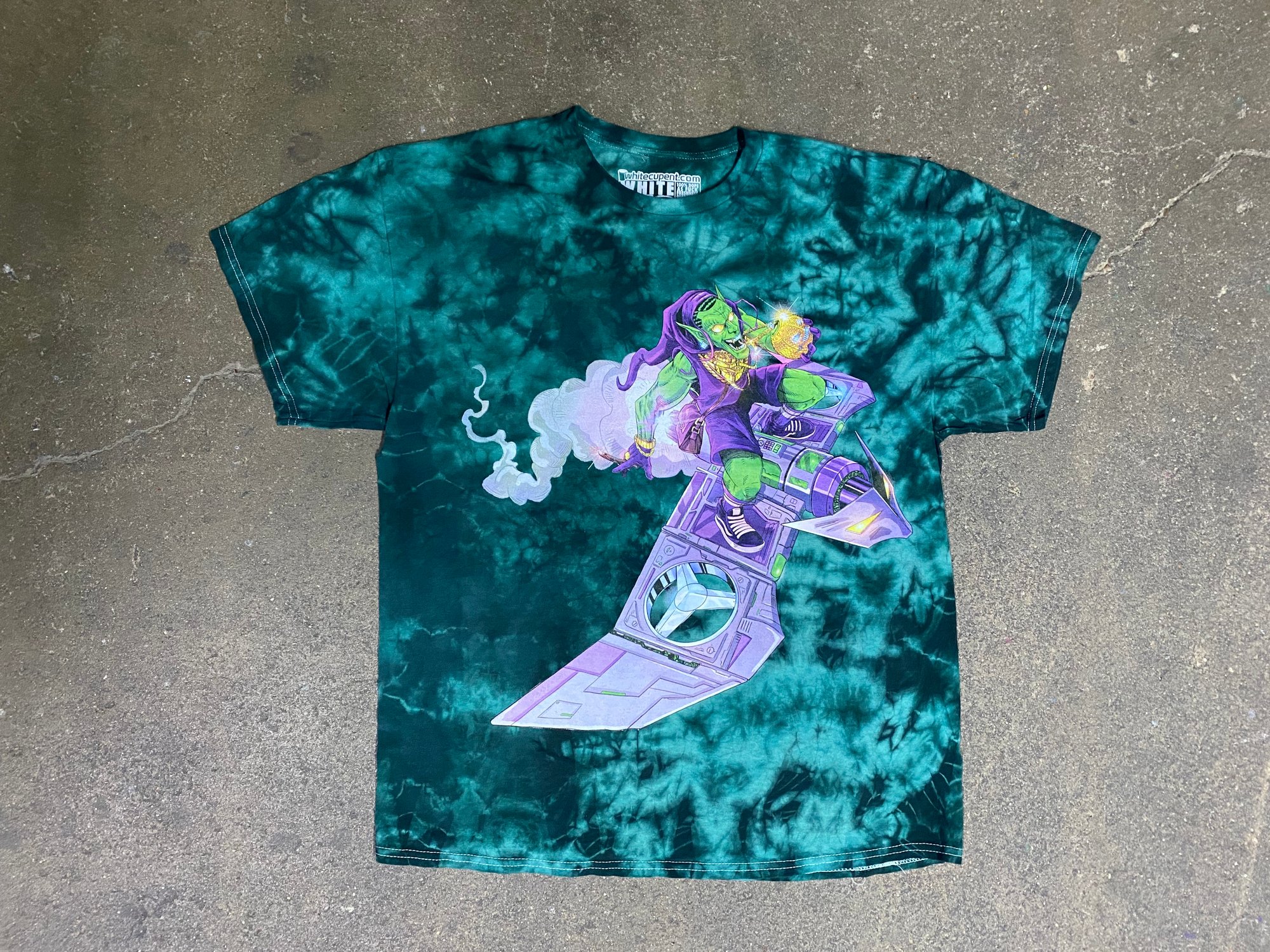 Our Comicpalooza Variant is a green crystal tie dye Flight of the Goblin tee featuring our original take on the Gas Goblin. All iced out sparked up and in full glorious color.