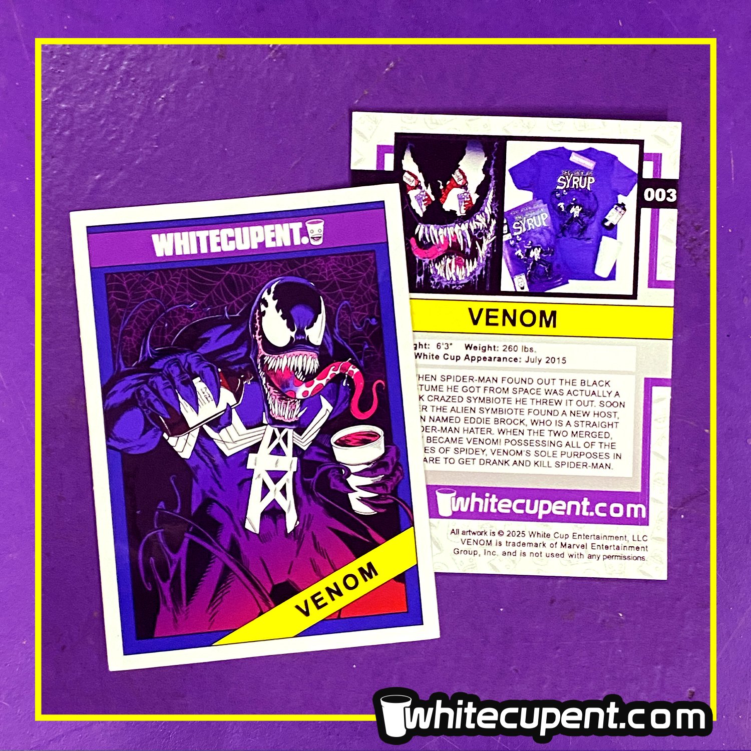 MARVEL White Cup Trading Card/Stickers #1 contains 5 stickers printed on premium adhesive film with a glossy weather resistant laminate to give your stickers a 2-4 year minimum outdoor life. Features the first set of 4 NEW illustrations of Marvel characters as reimagined buy H-Town's own White Cup Entertainment. Each trading card doubles as a sticker and features some interesting stats on the back. Each set contains..