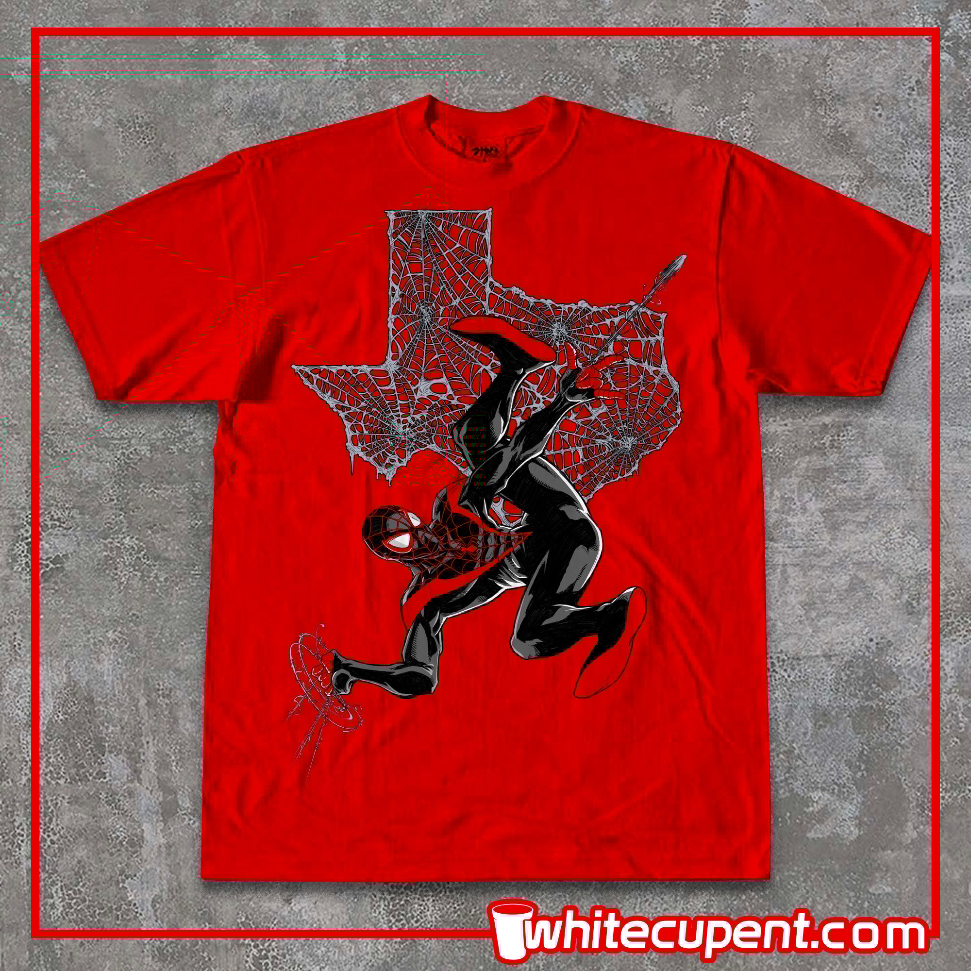 If you missed out on the original Texas Swangin tee we've got sumn for you. A NEW Texas Swangin Spidey tee.. only this time it's MILES! Featuring a brand new illustration of the Miles Morales Spider-Man swangin’ in front of a webbed up TEXAS STATE.